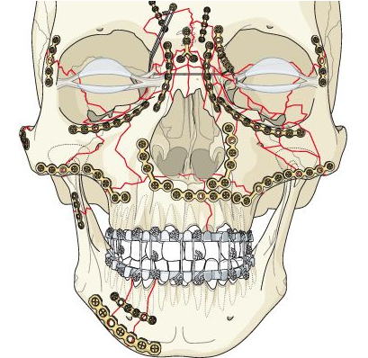 Fractures of the face are treated in a similar manner to fractures in other parts of body. The basic principles are followed: reduction and fixation of the bony segments to immobilize segments at the fractures site. This is accomplished by surgical placement of plates and screws. Dr. Arango rarely wires the jaws together. When the mandible and/or maxilla are involved, the pre-operative bite must be restored.